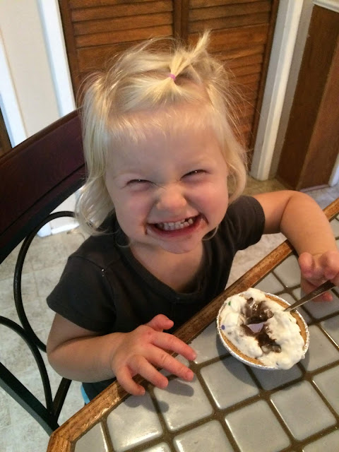 For months after Evy's birthday she was convinced that every day was her birthday. Every day she would frantically dig through our fridge and pantry trying to find something sweet. Once she did, she would pull this candle out of nowhere and we would all have to sit around her and sing Happy Birthday. Funny kid.